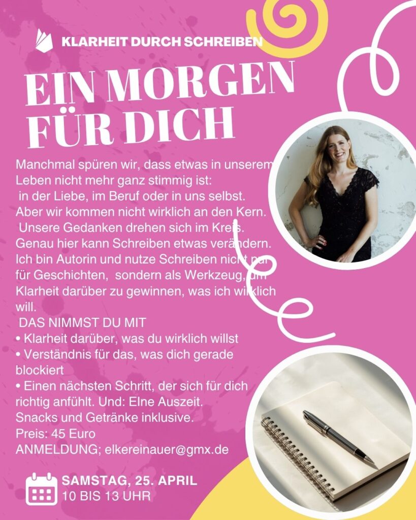 Ich bereite meinen Workshop vor. Am 25. April gebe ich einen Schreibworkshop zum Thema Klarheit durch Schreiben. Ich freue mich schon so sehr.